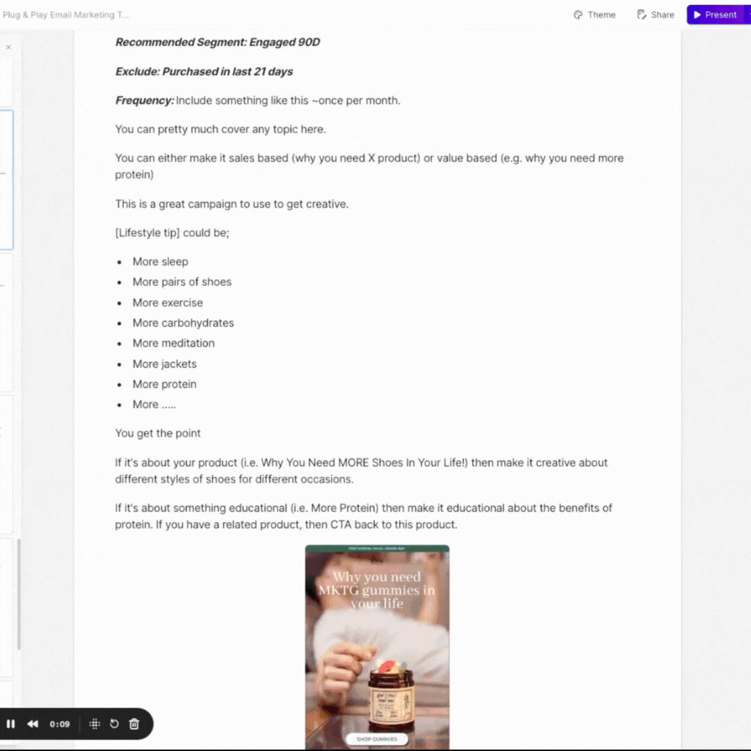 Each template comes with a detailed explanation of the campaign, how to use it, and which segments we suggest sending to.